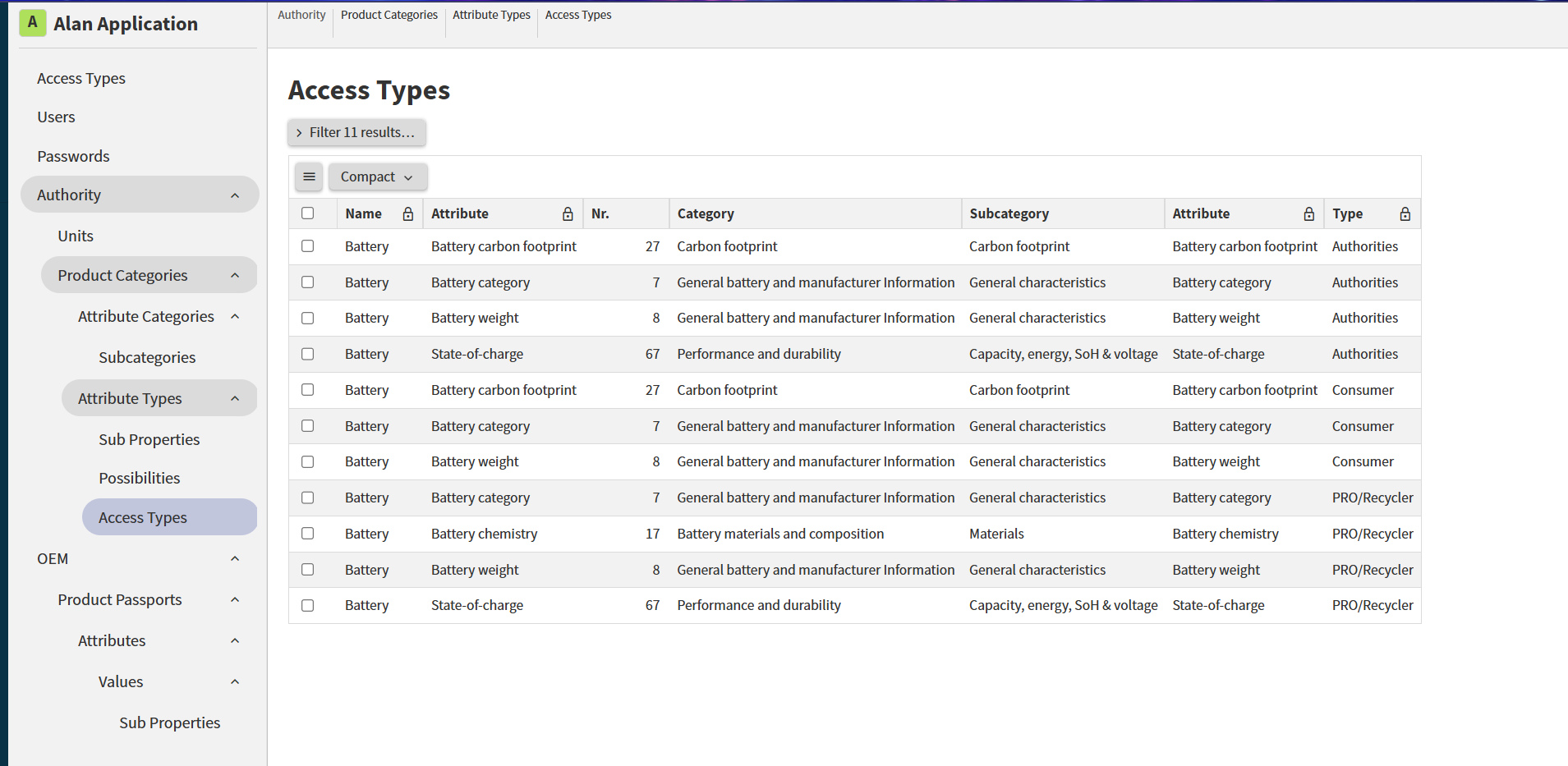 Thank you for your answer! So if I understand correctly, acces type could be a stategroup, but then new acces types can only be added in the application.alan file, not in the web application?