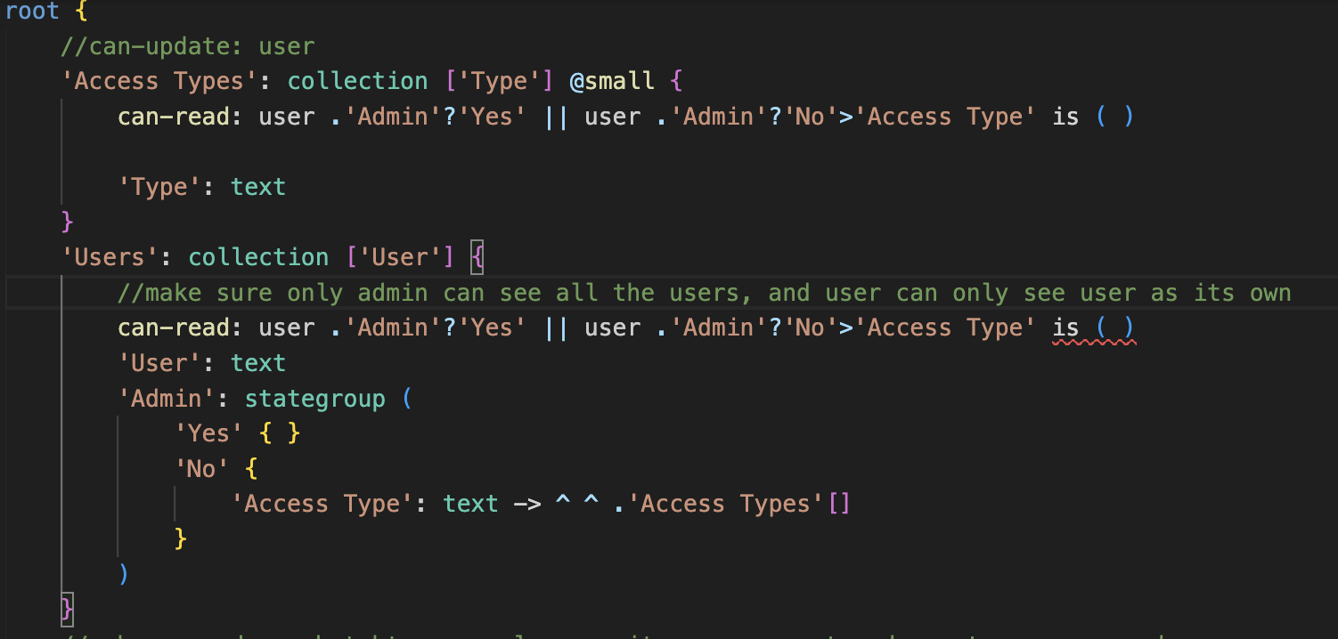 can-read: user .’Admin;’?’Yes’ || user . ‘Admin’?’No’>’Access Type’ is ( . ‘Admin’?’No’>’Access Type’ )